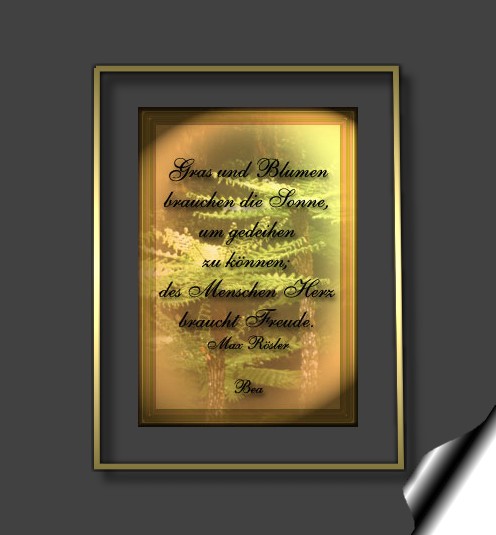 Gras und Blumen brauchen die Sonne, umgedeihen zu können, des Menschen Herz brauchtFreude!