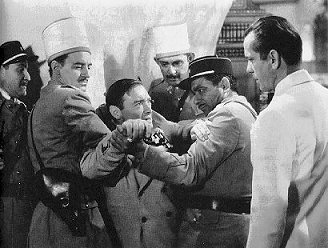 Genau hierhin kommt eines Tages Victor Laszlo (Paul Henreid), der eine Zentralfigur der europäischen Widerstandsbewegung ist und aus einem deutschen KZ geflohen ist, mit seiner Frau Ilsa (Ingrid Bergman). Es erscheint auch der deutsche Major Strasser (Conrad Veidt), der dafür sorgen soll, dass Casablanca die Endstation für Victor Laszlos Flucht wird. Am gleichen Abend wird in Ricks Bar der Abenteurer Ugarte (Peter Lorre) verhaftet, der verdächtigt wird, im Besitz von zwei Blanko-Visa zu sein, die einem ermordeten deutschen Kurier abgenommen wurden. Die Visa werden allerdings nicht gefunden. |