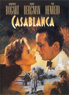 Casablanca gehört zu den Klassikern der Filmgeschichte. Zeitlose Ingredienzien wie verlorene Liebe, Intrigen, Geheimnisse und Melodrama vermischen sich vor dem Hintergrund des Zweiten Weltkriegs und mit Hilfe der von Max Steiner ausgewählten Musik (As Time Goes By) zu einem unschlagbaren Cocktail. Hervorragende Schauspieler wie Humphrey Bogart (Rick/Richard Blaine), Ingrid Bergman (Ilsa Lund), Paul Henreid (Victor Laszlo), Sydney Greenstreet (Ferrari), Claude Rains (Captain Louis Renault), Peter Lorre (Ugarte) und Conrad Veidt (Major Strasser) tragen das ihre zum Erfolg bei. |